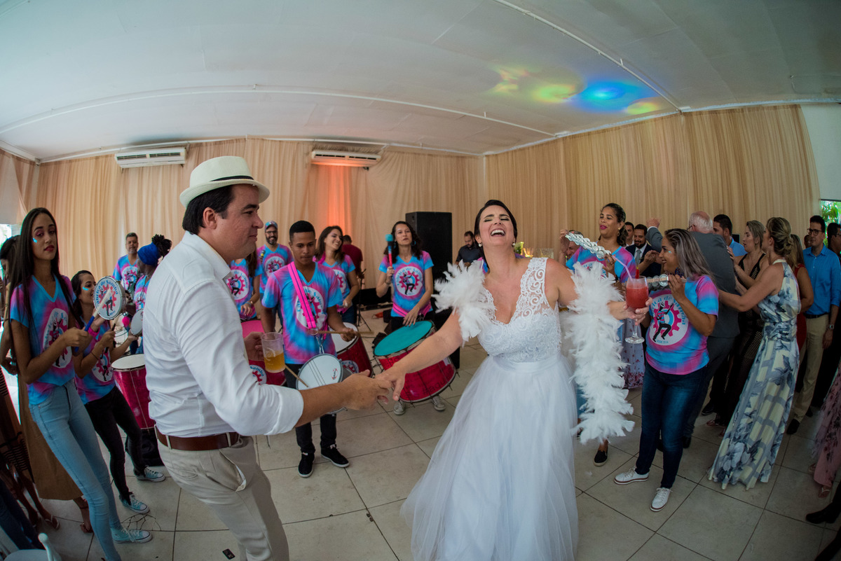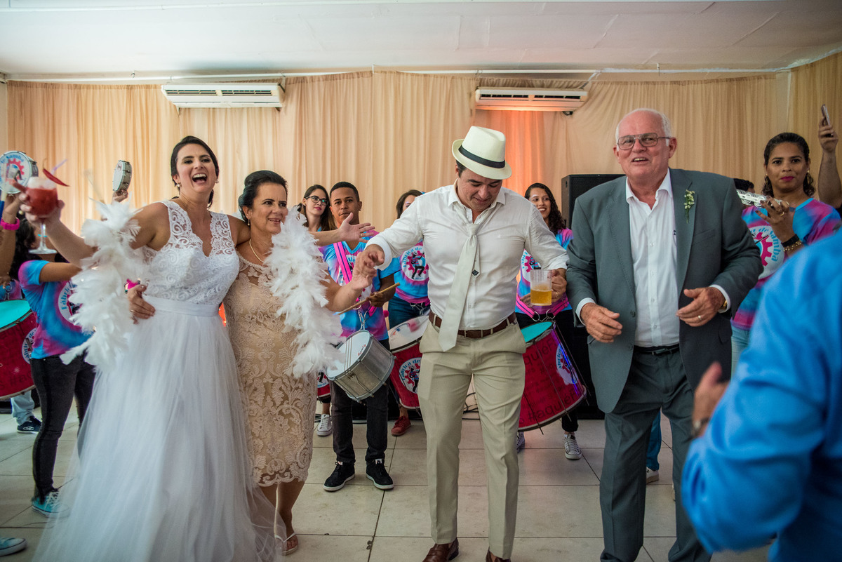E, pra completar o tchan do dia, os noivos entraram no salão junto com uma orquestra de frevo!