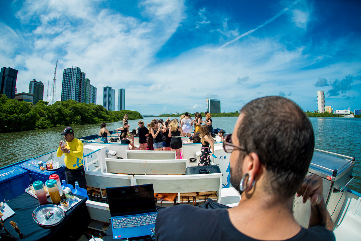 As amigas da Duda (a noiva) capricharam! Fecharam um passeio de Catamarã pela cidade do Recife com direito a comidinhas, bebidinhas e até um DJ! Claaaro que não poderia faltar registros desse dia, né não? Hahahha